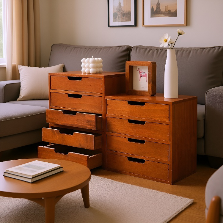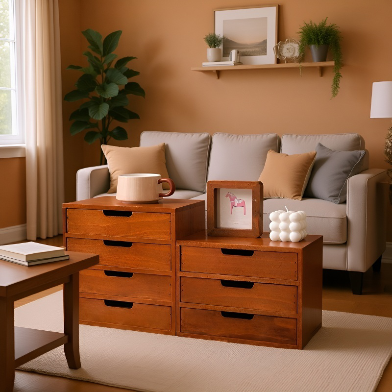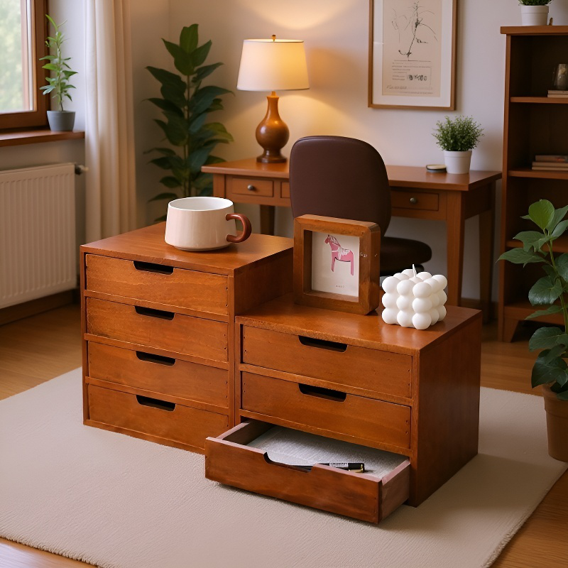 ● 다양한 다단 서랍형 디자인으로 소형 잡동사니부터 화장품까지 깔끔하게 정리할 수 있는 실용적인 탁상 사물함입니다. ● 내구성 좋은 우드 소재와 공간 활용도를 높여주는 키높이 선반 구조로, 책상 위 효율적인 수납을 도와줍니다. ● 다용도로 사용할 수 있는 넉넉한 수납공간과 작은 사이즈로 침실, 사무실, 화장대 어디에나 잘 어울립니다. ● 모던하고 세련된 디자인으로 인테리어 효과까지 챙기며, 필요한 물건을 한눈에 찾을 수 있어 편리합니다. ● 견고한 구조와 부드러운 서랍 개폐로 오랫동안 사용할 수 있는 실생활 필수 아이템입니다.