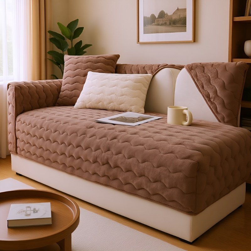 겨울 소파 커버 미끄럼 방지 두꺼운 보풀 대두 섬유 소파 커버 커버